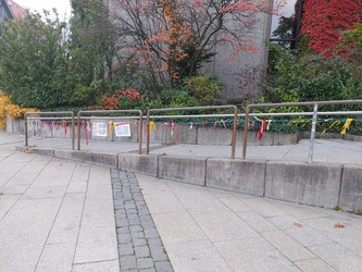 Wer dieser Tage am neuen Rathaus vorbeigeht, dem springen unzählige farbige Bändchen, säuberlich aufgereiht auf einer Wäscheleine, ins Auge. Doch was auf den ersten Blick wie eine Verschönerung des grauen Hochhauses wirkt, hat einen ernsten Hintergrund. Mit der Aktion „Das Band spricht Bände“, will die gemeinsame Initiative der Eltern der städtischen Kitas Insterburger Weg und Weende West, auf einen Missstand hinweisen. In Letzterer ist nämlich seit August fast jeder dritte Betreuungsstag im Krippenbereich ausgefallen. Für jeden dieser ausgefallenen Betreuungstage haben die betroffenen Kinder zusammen mit ihren Eltern dort ein farbiges Bändchen aufgehangen. Ariane Mühlethaler, Elternbeiratsmitglied der Kita Insterburger Weg, erklärt dazu:
