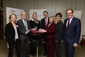 v.l.n.r.: Angelika Böttcher (Stellv. Fachbereichsleiterin VHS Göttingen Osterode gGmbH), Klaus-Dieter Gläser (Vorsitzender der Geschäftsführung der Agentur für Arbeit Göttingen), Dr. Dagmar Schlapeit-Beck (Stadträtin und Dezernentin für Soziales und Kultur, Stadt Göttingen), Thomas Eberwien (Geschäftsführer VHS Göttingen Osterode gGmbH), Cornelia Rundt (Niedersächsische Ministerin für Soziales, Gesundheit und Gleichstellung), Ina Langanke (Leiterin Koordinierungsstelle "Frauenförderung in der privaten Wirtschaft) und Bernhard Reuter (Landrat Landkreis Göttingen)
