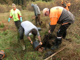 Forststudenten verschließen altes Entwässerungssystem im Waldmoor Teichwiesen