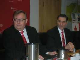 André Schüller und Rainer Hald vom Vorstand der Sparkasse Göttingen erläutern die Bilanz 2017. (Bild: Jeanine Rudat)