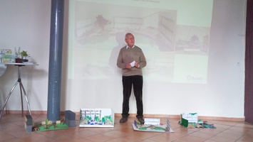 Frau Bender, Anna, Stella und Helen zeigten sich bei der Urkundenübergabe durch die Projektleiterin Sonja Heuner erfreut über den ersten Platz und einen Windenergie-Baukasten, Fachbücher und Saatgut. (Bild: Lina Küther)