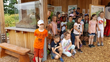 Grundschüler aus Neuhaus profitieren vom neuen Ameisenschaugehege. Den Unterricht über heimische Insekten können sie nun vor Ort im Wildpark Neuhaus abhalten. (Bild: Rudolph/Landesforsten)