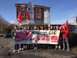 Die Beschäftigten der Deutschen Post Customer Service Center GmbH in Einbeck kämpfen um einen Tarifvertrag. Die Gewerkschaft ver.di hatte das Tochterunternehmen des Postkonzerns bereits im Dezember 2017 zu Tarifverhandlungen aufgefordert. Telefonagenten lägen hier mit einem Verdienst von 9,26 Euro in der Stunde nur etwas über dem Mindestlohn, dies müsse dringend geändert werden, erklärte Martina Benders, Einbecker Betriebsgruppenvorsitzende von ver.di. Die Gewerkschaft will nun gemeinsam mit 140 Beschäftigten in Einbeck den Druck auf die Post erhöhen. Eine erste Aktion unter dem Motto: „Tarifvertrag jetzt“ fand bereits statt.