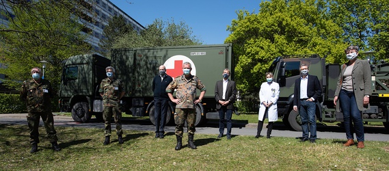 Die Universitätsmedizin Göttingen (UMG) hat am vergangenen Donnerstag ein mobiles Computertomograph-Gerät der Bundeswehr erhalten. Es soll die UMG bei der radiologischen Diagnostik von Coronavirus-Verdachtsfällen unterstützen. Den Bedarf hatten die Universitätsmediziner zuvor im Stab für außergewöhnliche Ereignisse der Stadt Göttingen geäußert. Der Container mit dem CT kam zusammen mit einem Aufbaukommando vom Sanitätsregiment 3 aus Dornstadt bei Ulm nach Göttingen. Das Gerät wurde in der Nähe der Notaufnahme der UMG am Bettenhaus 1 aufgestellt. Der CT ist Bestandteil eines großen mobilen Bundeswehrhospitals, das in Dornstadt seinen Standort hat.