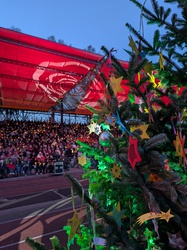 Gemeinsam singen für den guten Zweck – unter diesem Motto kamen gestern rund 5.000 Menschen zusammen. Im Göttinger Jahnstadion fand wieder das Weihnachtssingen statt. Moderiert wurde die Veranstaltung von Kreiskantorin und Sängerin Gabriele Renneberg. Gemeinsam mit ihr, der Band „Ina & Co.“, dem Dransfelder St.-Martini-Kirchenchor und dem Staufenberger Chor „CorTakt“ sangen die Besucher*innen Klassiker wie „O Tannenbaum“ und „Jingle Bells“. Alle Einnahmen des Abends kommen dem Kinder- und Jugendhospiz Sternenlichter zugute. Insgesamt wurden laut Mitteilung des Sternenlichter e.V. gut 34.000 Euro gesammelt. Das Hospiz wurde dieses Jahr in Grone eröffnet und unterstützt Familien mit unheilbar kranken Kindern.