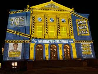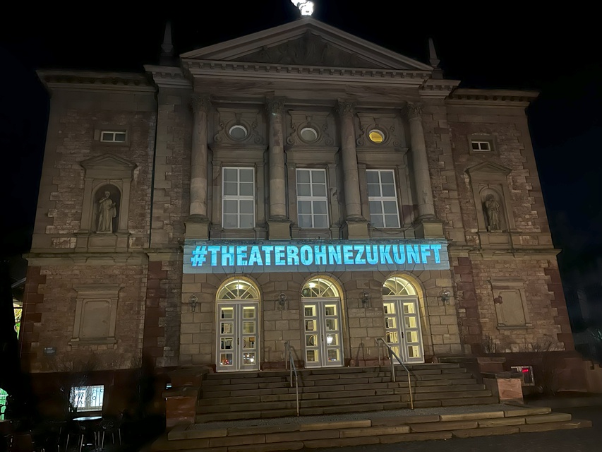 Das Deutsche Theater Göttingen hat am Samstagabend eine Protestaktion unter dem Motto „Theater ohne Zukunft“ gestartet. Nach Einbruch der Dunkelheit soll das Theater nun bis Ende Februar mit verschiedenen Symbolen, beziehungsweise Logos von Unternehmen, angestrahlt werden. Wie es in einer Mitteilung des Deutschen Theaters Göttingen heißt, wolle man mit der Aktion sichtbar machen, was auf dem Spiel steht, wenn das Theater aufgrund von Finanzierungsengpässen schließen müsste.